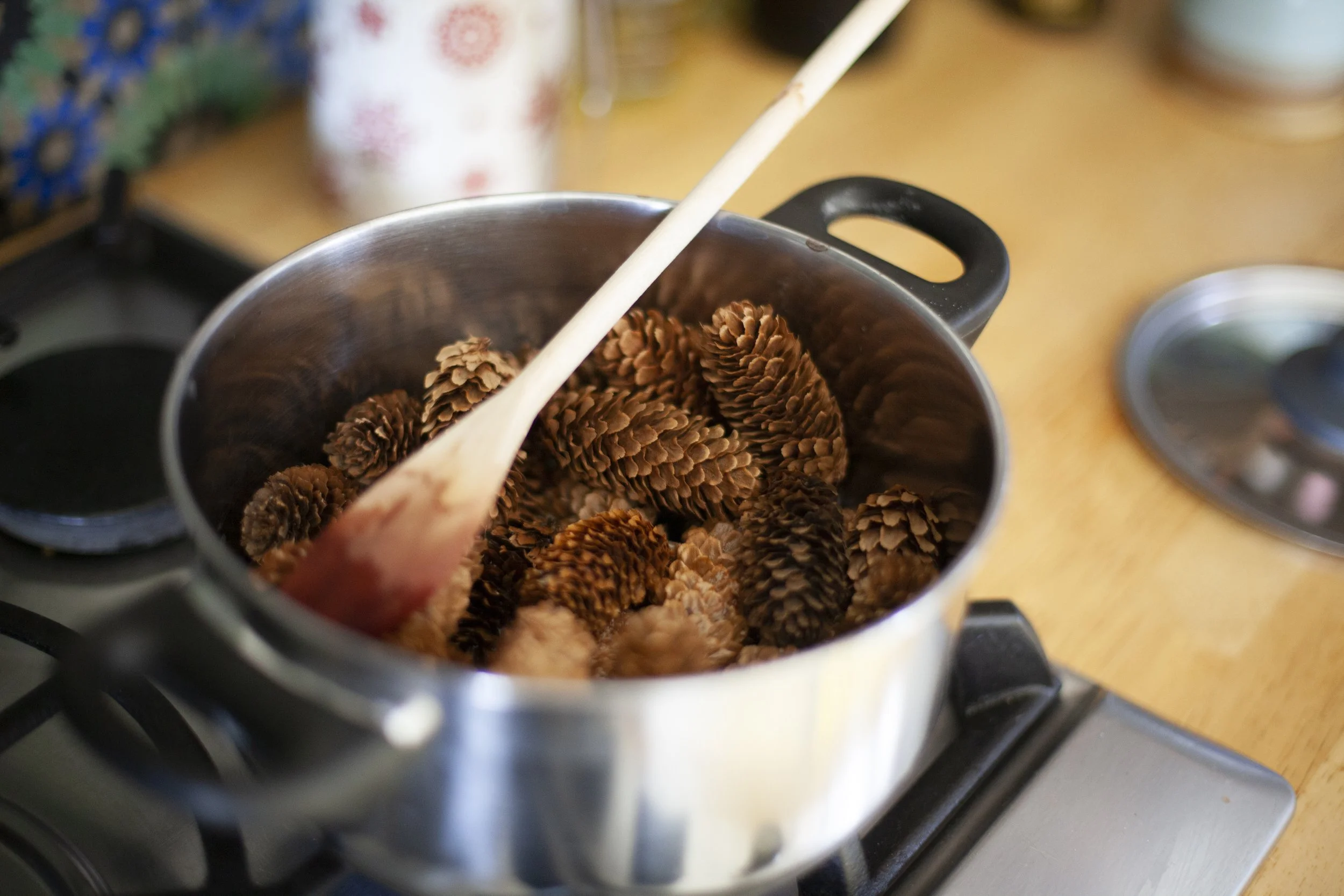 I had intended to make a different ink for my second round of experiments, but I was out walking my dog and I came across a load of pine cone scattered on the ground so I decided to gather a bundle and see what would happen if I tried to make some ink out of them - and I think it’s a fitting way of continuing this journey of experimentation with natural colours - whatever I happen upon in abundance is fair game for an ink experiment!